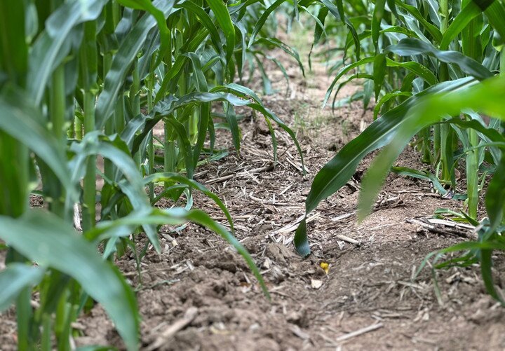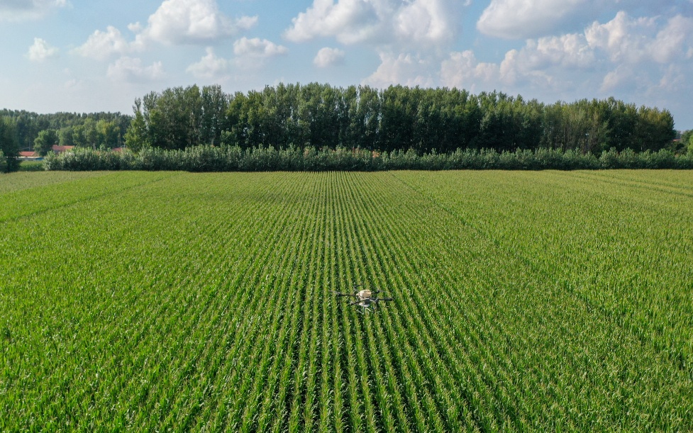 7月21日ღ◈✿ღ,在位于吉林省四平市梨树县的“科技小院”试验田ღ◈✿ღ,植保无人机为玉米精准施肥(无人机拍摄)ღ◈✿ღ。新华社记者 张楠 摄